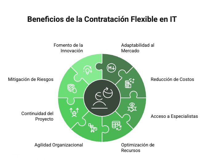 - Agilidad en la respuesta: La incorporación rápida de recursos especializados permite adaptarse velozmente a cambios en el mercado o necesidades de proyectos.